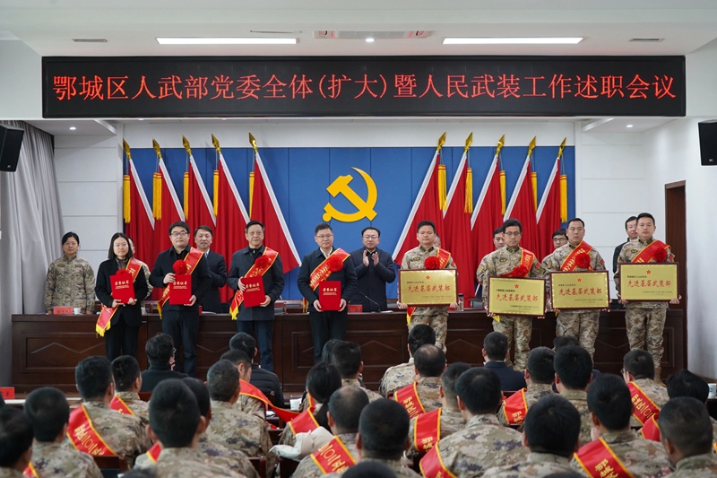 会议指出,过去一年,区人武部党委坚决贯彻落实习主席和中央军委决策部署,在湖北省军区、鄂州市委和军分区党委的坚强领导下,深入学习贯彻习近平强军思想,严格落实上级部署要求,牢牢把握党管武装根本原则,坚持“举旗铸魂”固根本,聚焦“能打胜仗”抓备战,统筹经济社会发展与国防后备力量建设,推动党管武装工作与全区高质量发展同频共振、互促共进。全区武装系统扎实推进备战打仗、民兵建设、兵员征集、双拥共建等各项工作,基层武装建设根基更加牢固,军政军民团结持续巩固,在应急处突、参建参治等急难险重任务中勇挑重担,为全区经济社会高质量发展和社会大局和谐稳定作出了重要贡献。