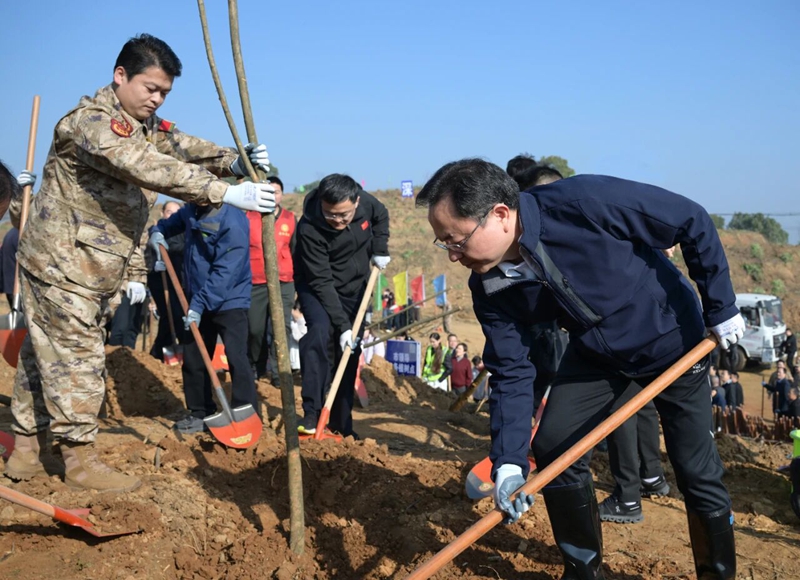 3月11日上午,在第48个植树节来临之际,市委书记孙兵,市委副书记、市长王玺玮等市“四大家”领导来到位于鄂城区碧石渡镇黄土咀村的植树点,与全市广大干部群众及来自多个国家的外籍友人一起参加义务植树活动,共同为美丽鄂州建设增绿添彩。