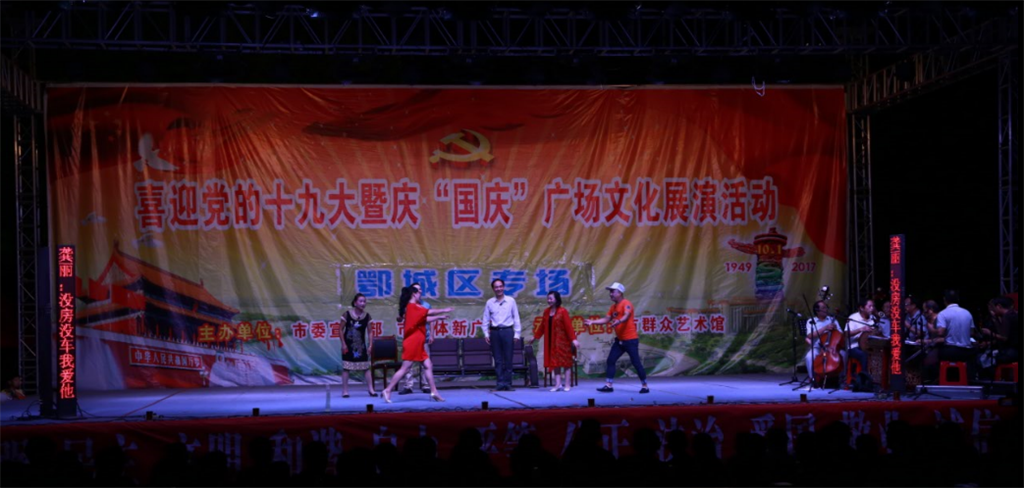 晚会开场以《祝福祖国》的大型舞蹈,彰显了鄂城人民热爱祖国,愿祖国更加富强的良好愿望。第二个节目是由燕矶镇文化干部肖秋兰表演的湖北大鼓《燕矶燕矶要飞大飞机》。肖秋兰是艺术大师张明智的关门弟子,也是唯一的女弟子,她的表演赢得了数次热烈的掌声。由鲁早生,余丽华表演的京剧选场《坐宫》,唱腔优美,两位中年京剧票友的不俗表现让大家折服。