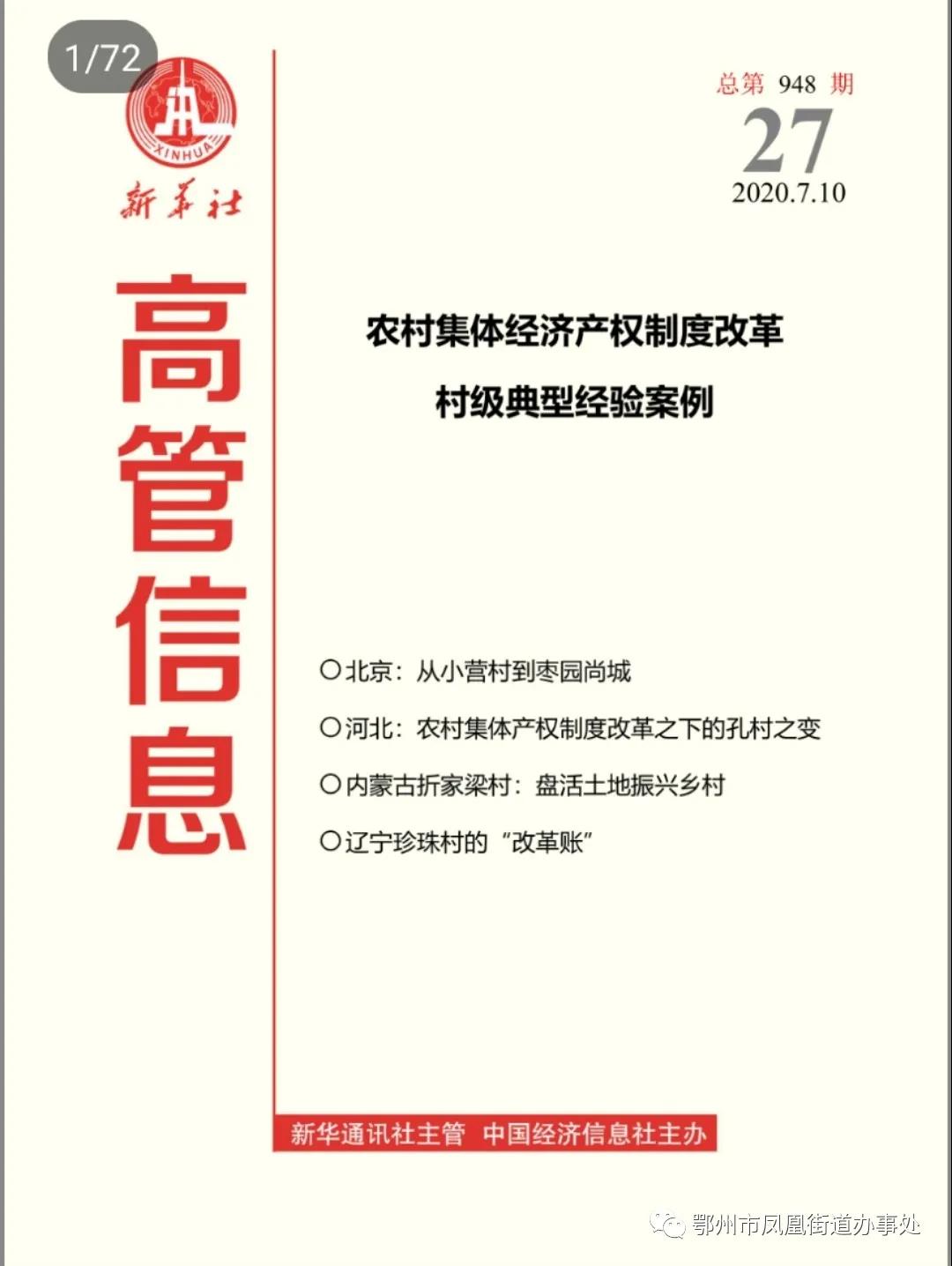 鄂州市莲花村作为湖北省农村集体产权制度改革试点村,坚持“走出去、学经验, 广纳谏、稳推进,齐上阵、成效好”的工作思路,以确保老百姓权益、让每一个村民都 受益为出发点,全力聚焦农村集体经济发展主业,积极探索出“莲花改革模式”。