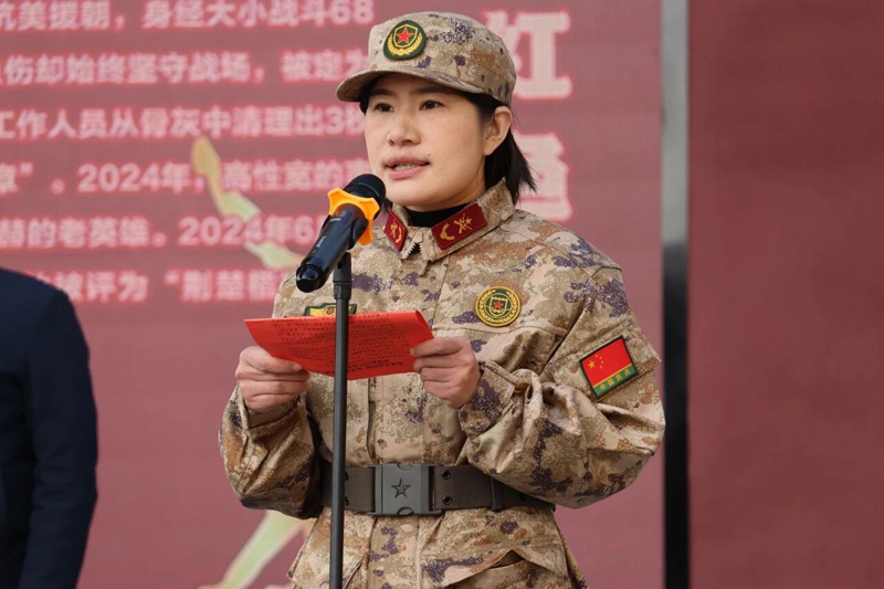 高性宽民兵连指导员、寒溪社区党委书记闫曼动情讲述,老英雄先后参加过抗日战争、解放战争、西南剿匪、抗美援朝,身经大小战斗战役68次,荣立特等功1次、一等功2次、二等功1次、三等功11次,负伤4次,身上留有三颗弹片。从水利局离休后,他积极投身小区公益活动,平日主动参与邻里调解、文明劝导,用日复一日的坚守影响着身边每一个人。“我是党员,为群众做事,是我应该做的。”老英雄的这句话,已成为社区民兵的行动指南。闫曼代表全体民兵郑重承诺:将传承英雄精神,扎根基层、服务群众,在社区治理和应急处突中当先锋、打头阵,以实际行动守护一方平安、保障一方发展。
