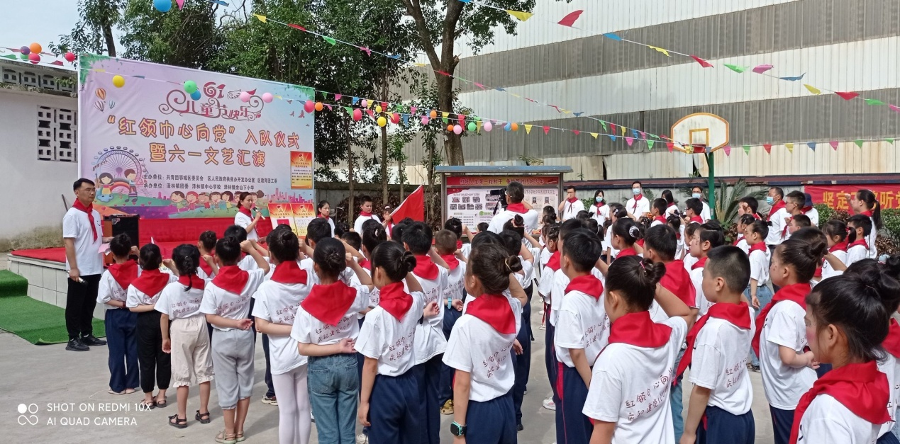6月1日,在共青团鄂城区委员会、区扶贫办、区教育团工委、泽林镇团委、泽林镇中心学校的关心支持下,泽林镇余山下小学举办“红领巾心向党”一年级新少先队员入队仪式,84名学生齐聚操场,隆重举行新队员入队仪式。