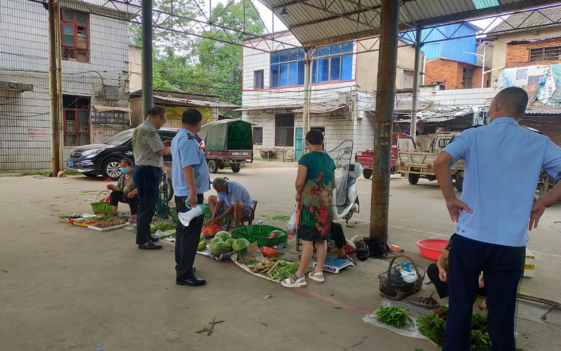 既要防控疫情,也要保障民生。集贸市场是相对比较难管理的地方,泽林镇塔桥村治保主任徐珍霞同志作为一名预备党员,她主动申请参与管理,和镇环保办的杨家松同志等一行人始终奋战在农贸市场疫情防控第一线,驻场值守,不留死角。徐珍霞同志负责农贸市场疫情宣传,并对进出人员进行体温检测,对没有健康码的老年人实名登记;杨家松等人对扫码入场人员查看健康码,是否有异常,同时负责从业人员健康管理﹑保洁消毒等情况加强督导检查。为确保口罩﹑消毒液等防疫用品和米﹑面﹑油﹑蛋﹑蔬菜等重要生活必需品的供应充足﹑价格稳定,执法人员对重点农贸市场﹑超市开展常态化监督检查,确保及时处理价格异动,严厉打击囤积居奇﹑哄抬物价等违法违规行为,确保人民群众的“菜篮子”“米袋子”稳定。