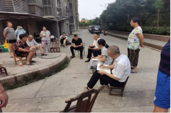 昼谈夜访楼下村中心小区村民代表、老党员围坐一堂