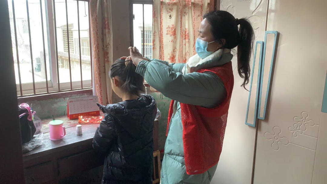 活动中,桐城村妇联工作人员为困境儿童梳头发,在拉近与孩子距离的同时进行敞开心扉地交流,在详细了解孩子们的生活、学习上的困难后,叮嘱孩子们要以健康的身体努力读书、增长见识、提升能力,展现出这个年纪该有的积极、向上、阳光、乐观、奋进的精神状态,提醒孩子监护人当前正处于甲流感染高峰期,一定要指导孩子做好个人防护,戴口罩、勤洗手、科学饮食,最后为每一位孩子们送上了爱心包和祝福。