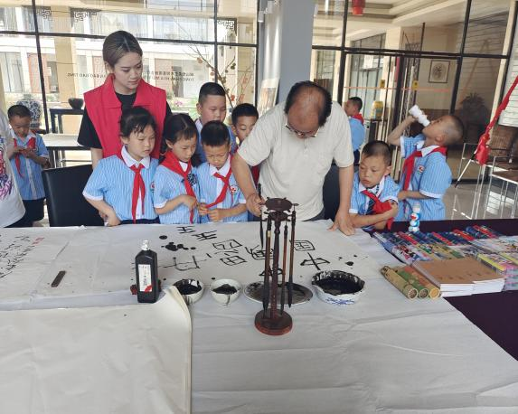 在“六一”国际儿童节到来之际,为继承中华民族优秀传统文化,弘扬汉字书法艺术,丰富学生课余生活,挖掘学生特长。5月30日,在峒山华美艺术创意园的大力支持下,长港镇妇联、镇新时代文明实践所、夏沟小学、长港镇社工站、中慈志愿加油站联合开展“弘扬书法艺术 翰墨飘香迎‘六一’”主题活动。让学生浸润在书香之中,让氤氲书香沁润孩子童年!