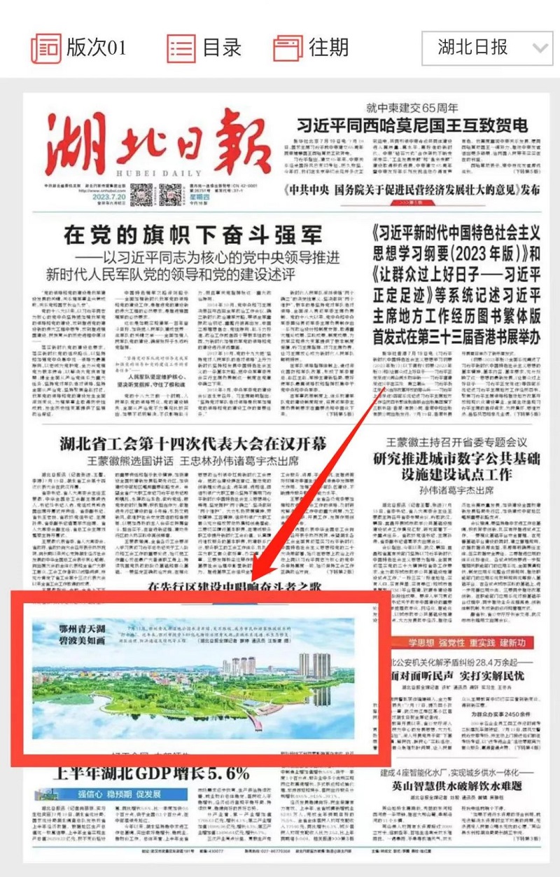 鄂州鄂城青天湖美照登上《湖北日报》头版啦!