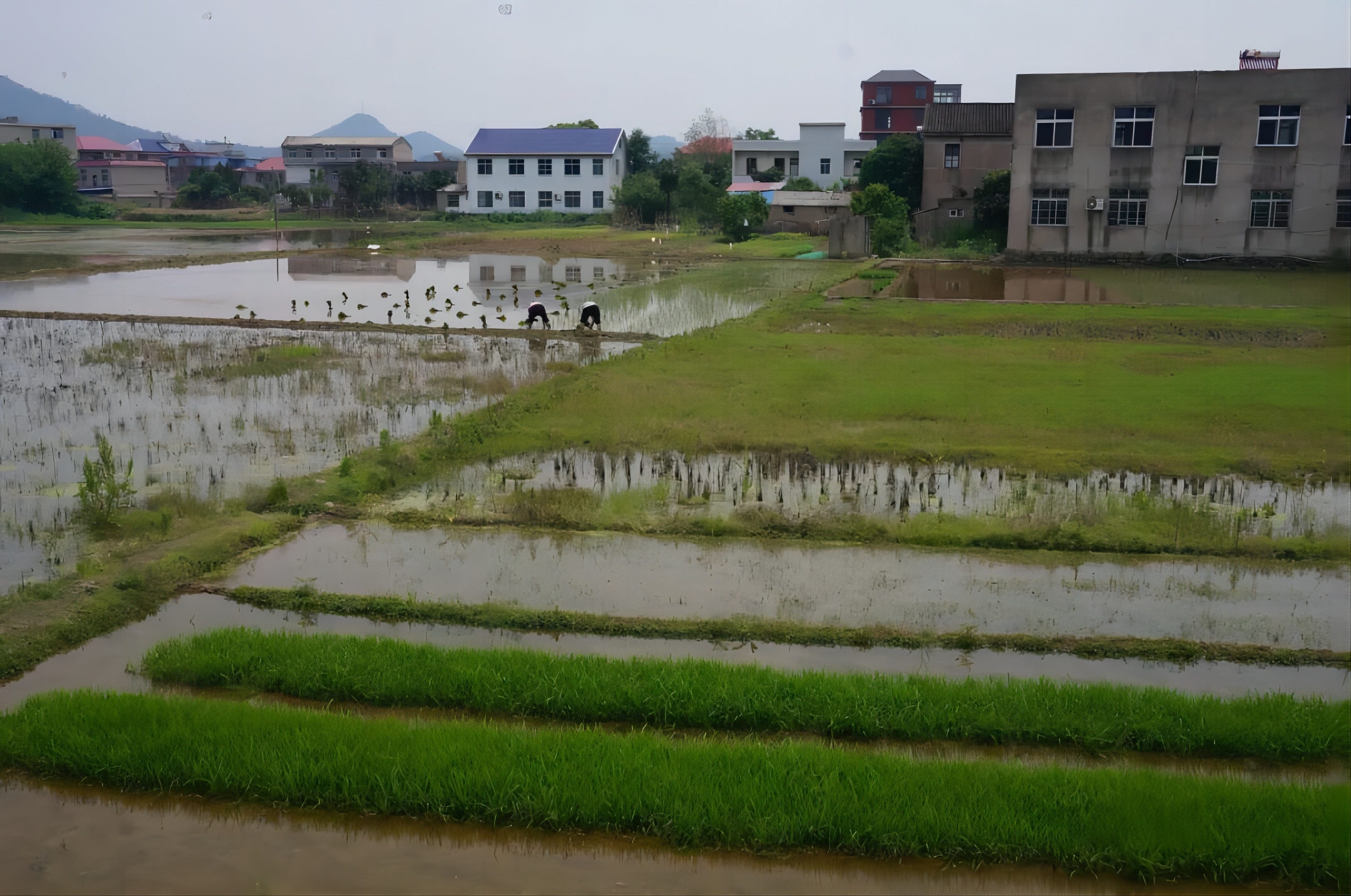 5月10日,在汀祖镇刘畈村下畈湾的田间地头,村民们犁地耙田、拔苗捆秧、移苗插秧,一排排秧苗整齐挺立在田间,为水田铺上了一层淡淡的新绿。