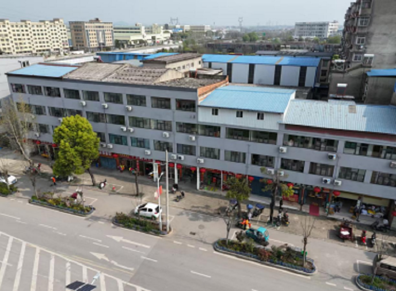 截至2026年3月底,项目团队对杜山镇三条主干道沿线17栋建筑进行统一改造:铲除破损瓷砖,重新粉刷灰色涂料;更换老旧门窗;加装统一规格的空调罩和特色镂空装饰;规范广告牌。